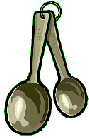 For measuring spoons, fill the measuring spoon to heaping full by dipping it in the dry ingredient and then level with the straight edge of a knife. Measure half spoon can be done by cutting a full spoon in half lengthwise and scraping out one half. Measure quarter spoon by cutting half spoon crosswise into portions as nearly equal as possible and scraping out a quarter.